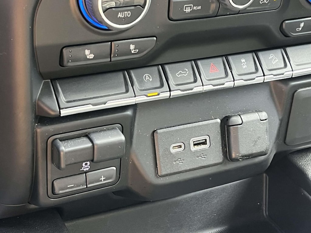 - The vehicle is equipped with a camera that displays an image of the area behind the vehicle on an interior display.
