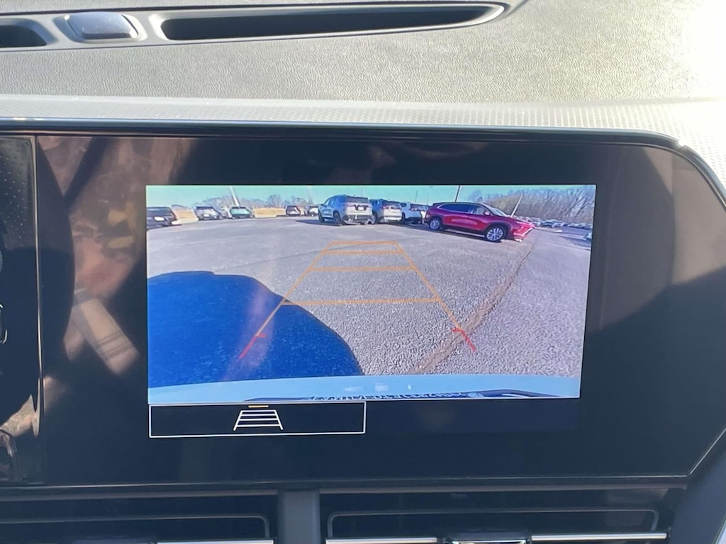 The vehicle is equipped with a camera that displays an image of the area behind the vehicle on an interior display.